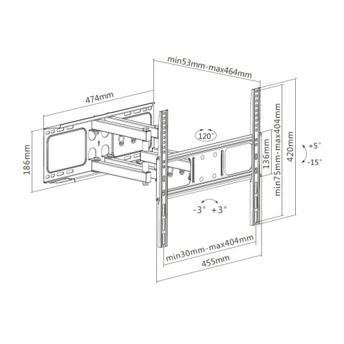 De Audizio FMB60 tv beugel is een universele full motion tv beugel waarmee je alle kanten op kunt. De muurbeugel is namelijk draai- en kantelbaar zodat je je tv eenvoudig richting de kijkpositie kunt draaien. Het ingebouwde kabelmanagement systeem houdt de kabels zoveel mogelijk uit het zicht en minimaliseert de kans op kabelbreuken. Ondanks de vele bewegingsmogelijkheden is de minimale afstand tussen de muur en de tv slechts 53mm waardoor het strakke design van een platte tv behouden blijft. De maximale afstand tussen tv en muur is bijna 50cm voor een optimale bewegingsvrijheid.